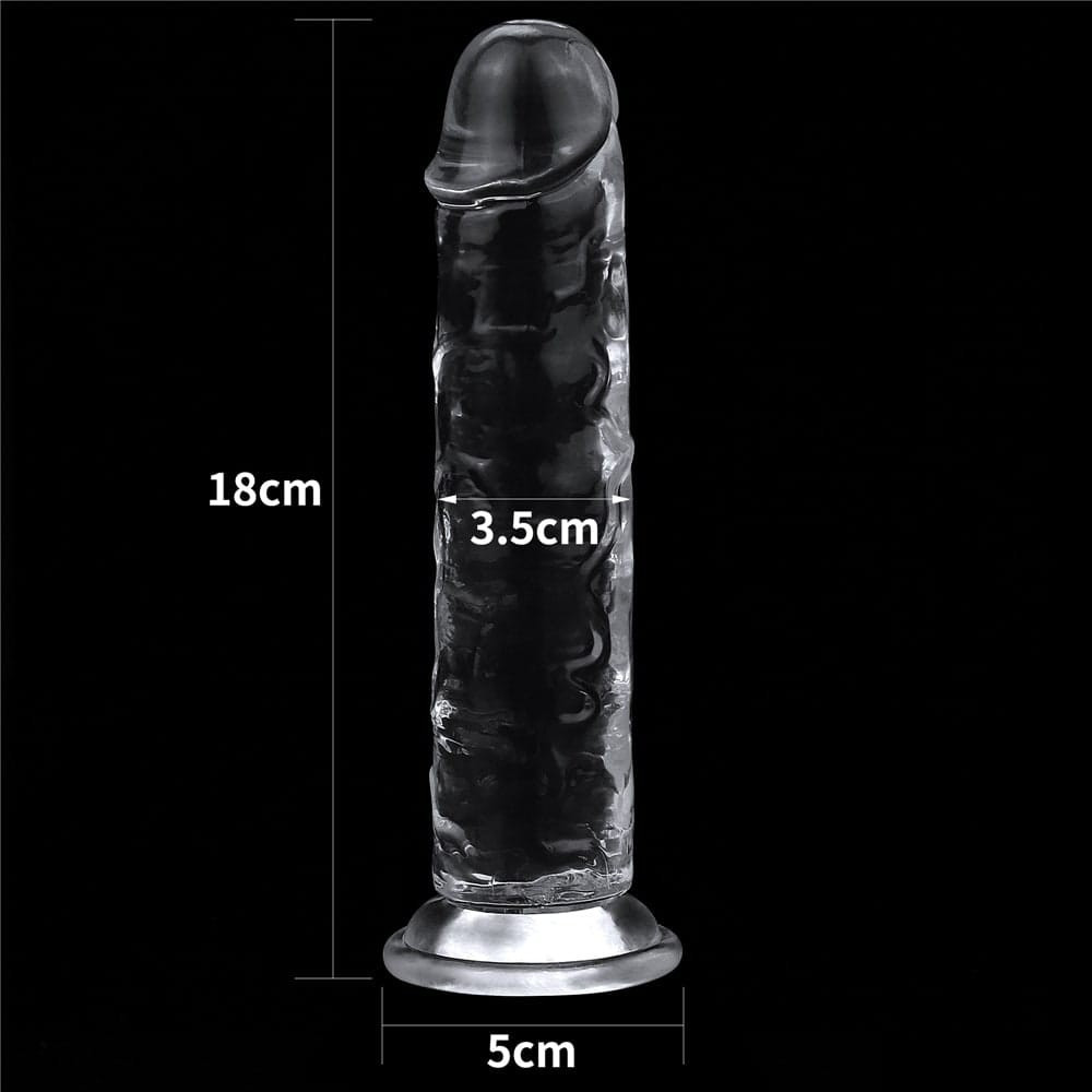 Puha anyagból készült, rugalmas, átlátszó, pénisz formájú, motor nélküli, erezett felületű dildó. Tapadókorongja segítségével sík felületre rögzíthető.