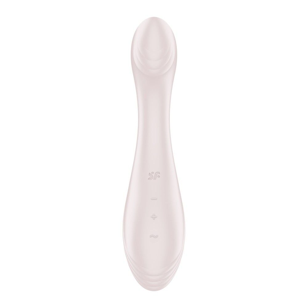A bőrbarát szilikonból készült G-pont vibrátor tökéletes játék mindazok számára, akiknek alig vagy egyáltalán nincs tapasztalatuk a G-pont stimulációval. Ugyanakkor G-pont szerelmesei is élvezni fogják az ergonomikus formájú vibrátort. A G-Force 10 különböző vibrációs programmal és 5 különböző intenzitással érkezik, így minden élvezeti szinthez a megfelelő vibrációs kombinációt kínálja. A sima felület lehetővé teszi a könnyű behelyezést, amit egy kis vízbázisú síkosítóval még könnyebbé tehetsz. Az enyhén ívelt formának köszönhetően könnyen elérheted a G-pontot, amely körülbelül 5 cm-re található a hüvely bejáratától. A lapított vég széleskörűen stimulálja az erogén zónát – a finom barázdák biztosítják azt a bizonyos extra élvezetet. A lapos vég kiválóan alkalmas a csikló izgatására is.