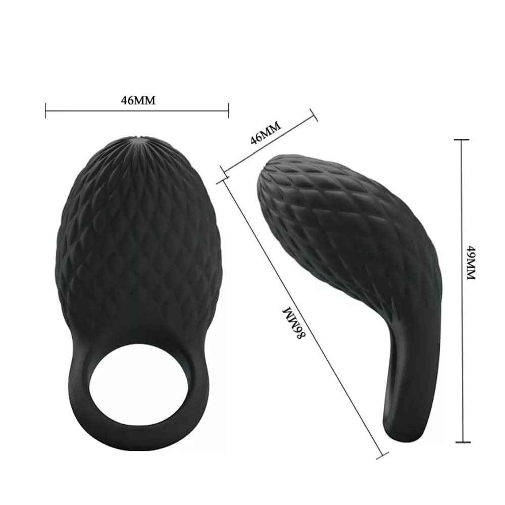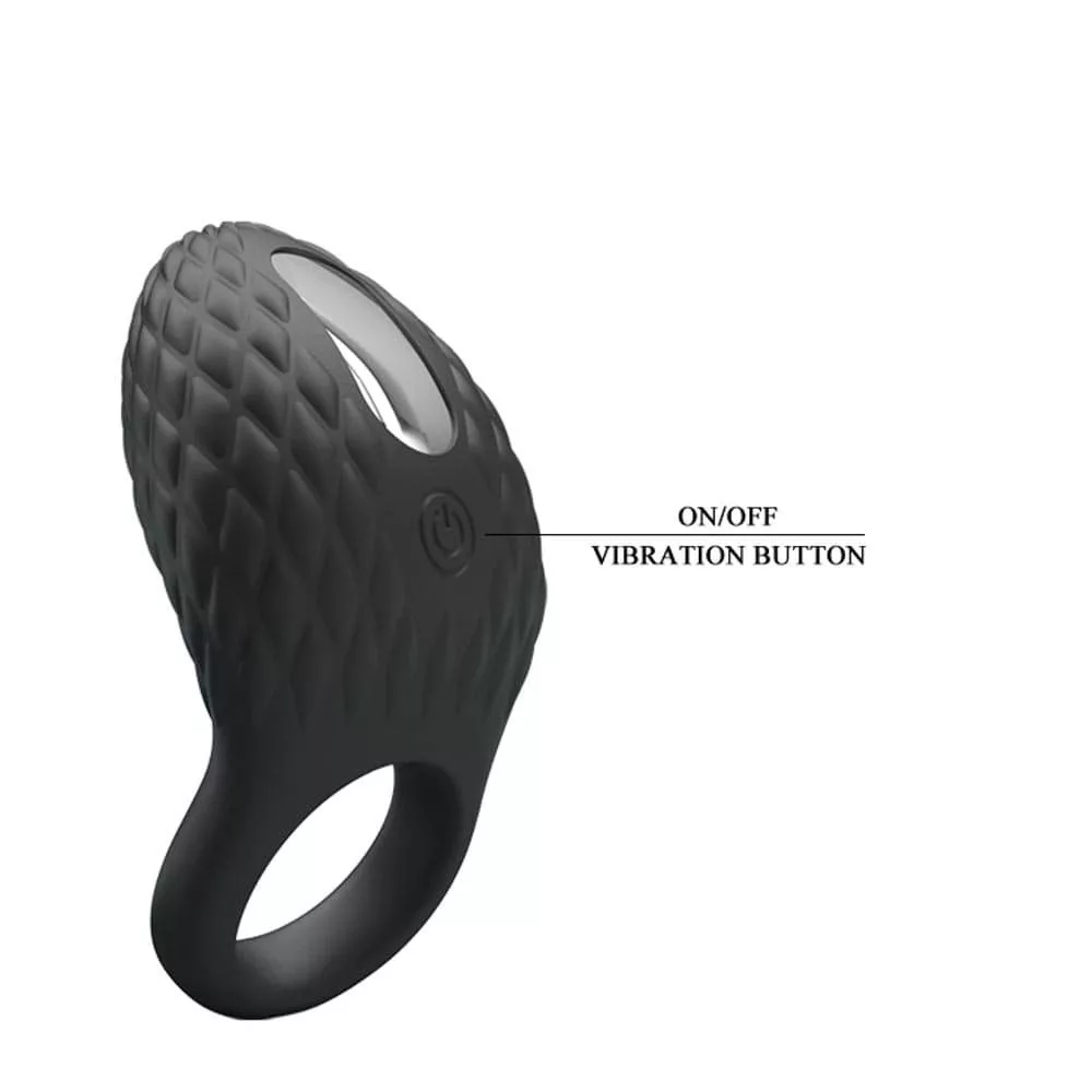 Gyémánt formájú mintával ellátott, 7 rezgési funkcióval rendelkező vibrátoros péniszgyűrű. Megtartja a pénisz kellő merevségét, és a benne lévő vibrátor extra stimuláló hatású, melynek segítségével az élmény jelentősen fokozható. Kialakítása révén behatolás közben a csikló stimulálására is tökéletesen alkalmas.