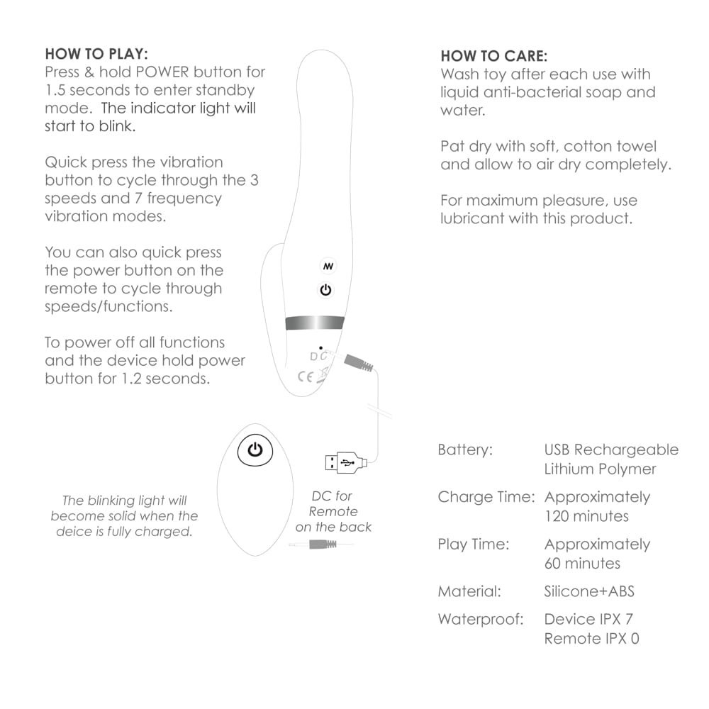 Kiváló minőségű anyagból készített, selymes felületű, használójának anális stimulációt biztosító, vezeték nélküli távirányítóval is szabályozható, mind a két végében 10 rezgési fokozattal rendelkező dildó, melyet kezdőknek is ajánlanak.