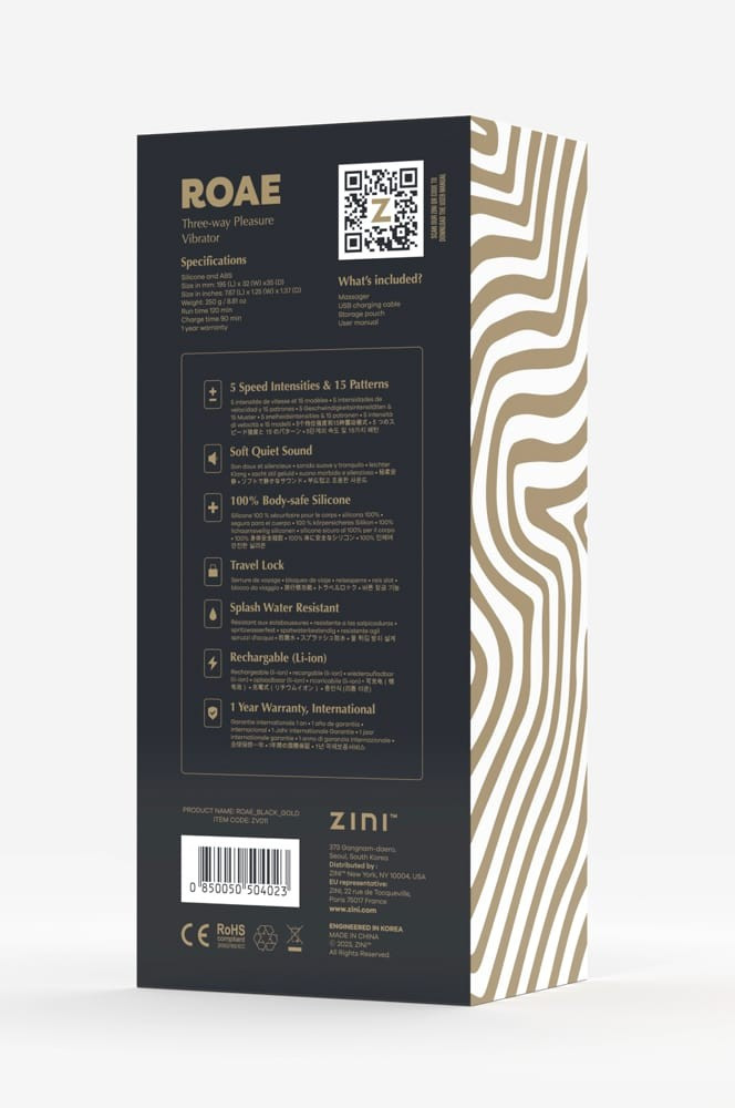 Zini Roae SE Three-way Pleasure Vibrator Black Gold